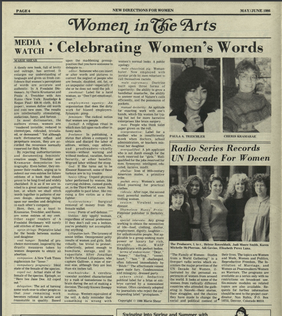 Descargar revista New Directions for Women,  May/June 1986, Volume 15, Issue 3, 24 pages. Artículo de Mary Shears en p. 6: https://www.jstor.org/stable/community.28041159 (Tengo la sensación de que esto ya lo he contado varias veces en el pasado, pero bueno, a ver si así lo encuentro más fácil.)